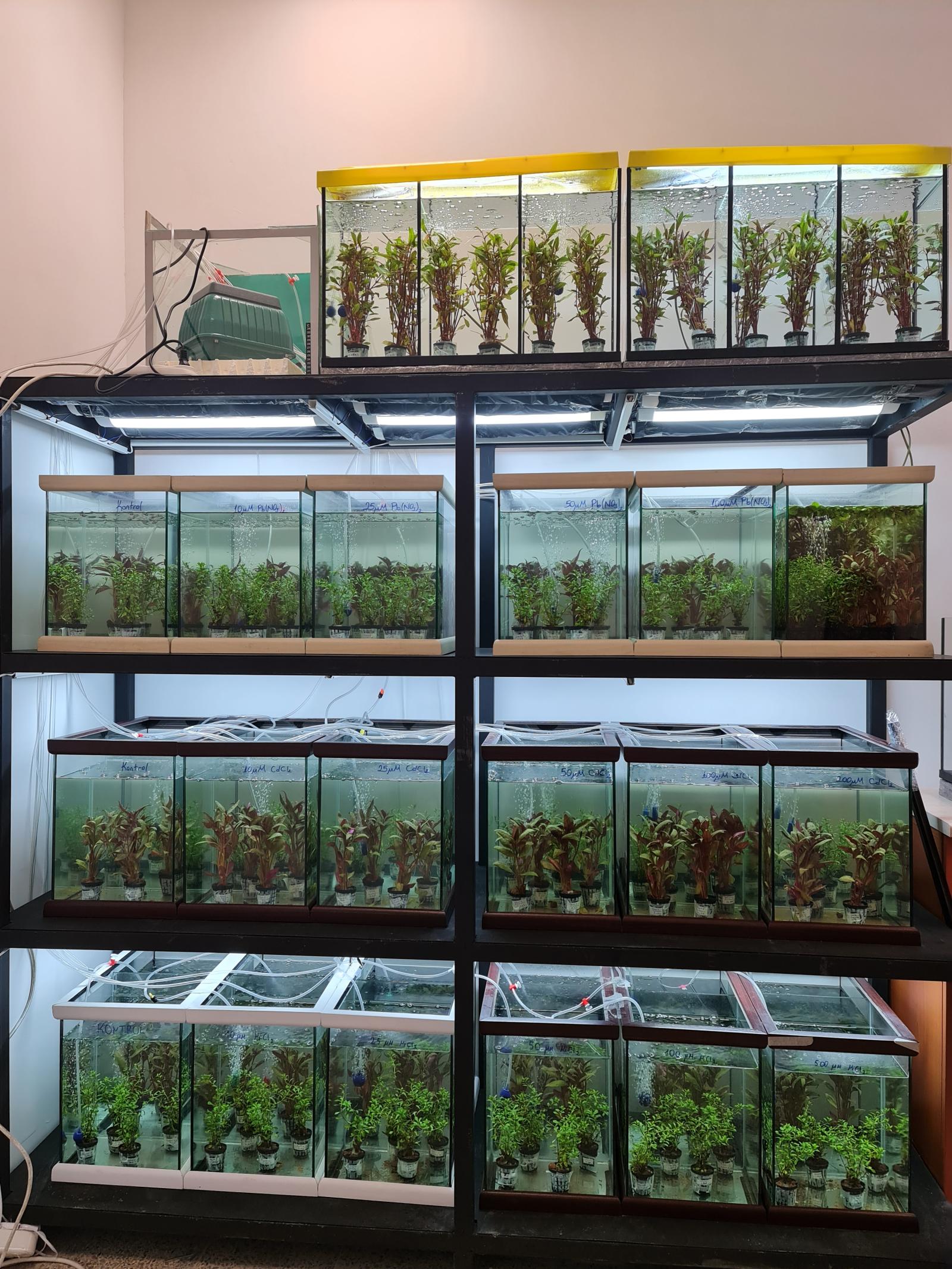 11951 FDK-2025-11951 Pil Endüstrisinde Kullanılan Bazı Metallerin Cd Pb Ni Zn ve Li Küba Kekiği Plectranthus amboinicus Lour Spreng Bitkisinde Fizyolojik ve Genotoksik Etkilerinin İncelenmesi isimli proje kapsamında Laboratuvarda su kültürü sistemleri kuruldu ve aktif bir şekilde kullanılmaktadır.